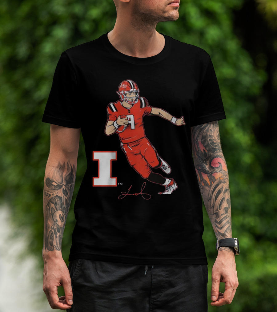 Illinois Football Luke Altmyer Superstar Pose I Logo Signature T-Shirt