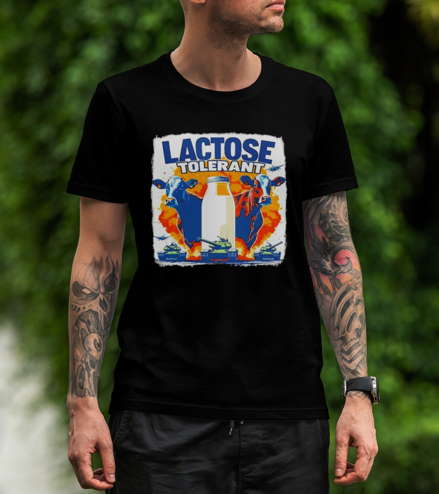 LACTOSE TOLERANT Milk Defense With Cows And Tanks T-Shirt