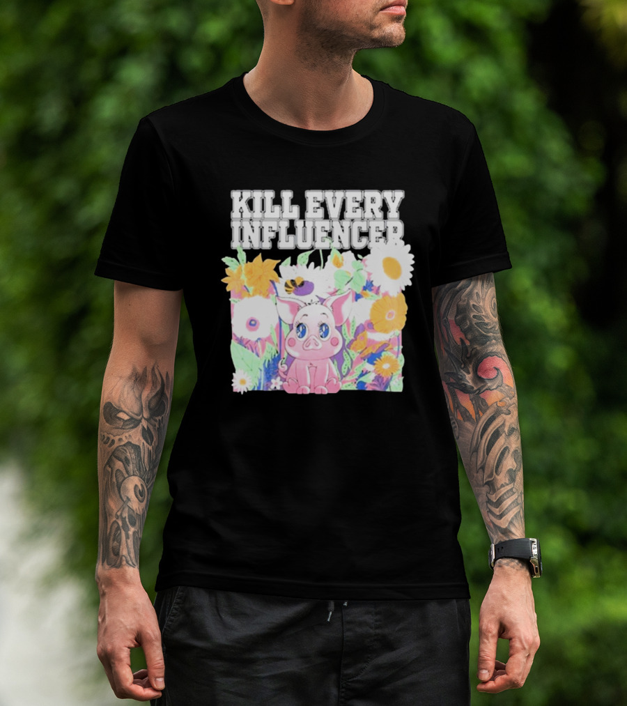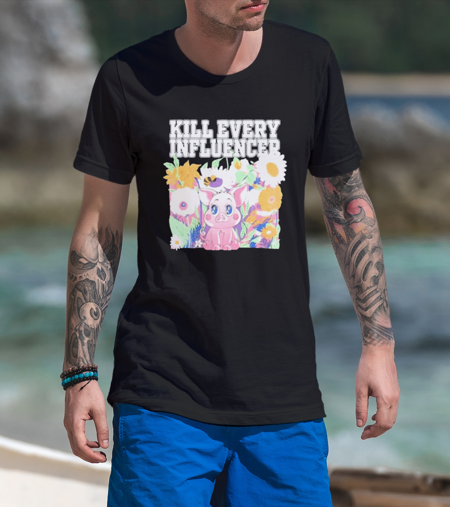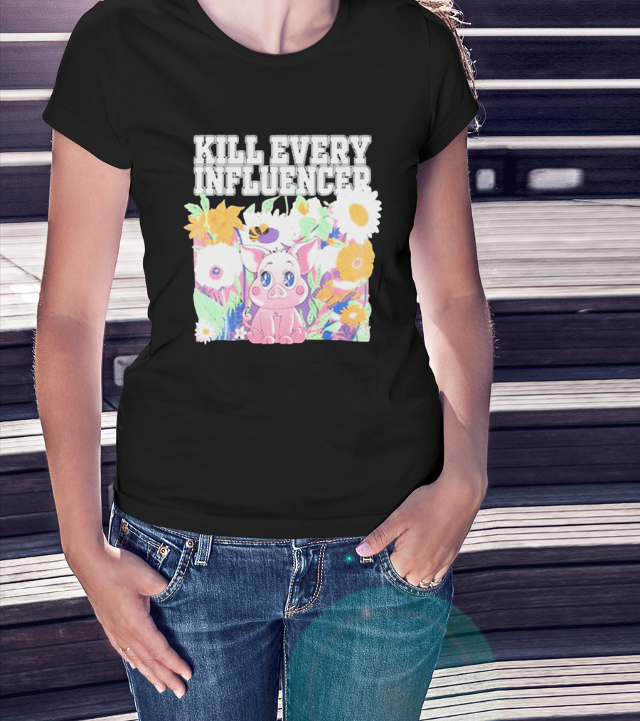 Kill Every Influencer Cute Pig Surrounded By Colorful Flowers T-Shirt