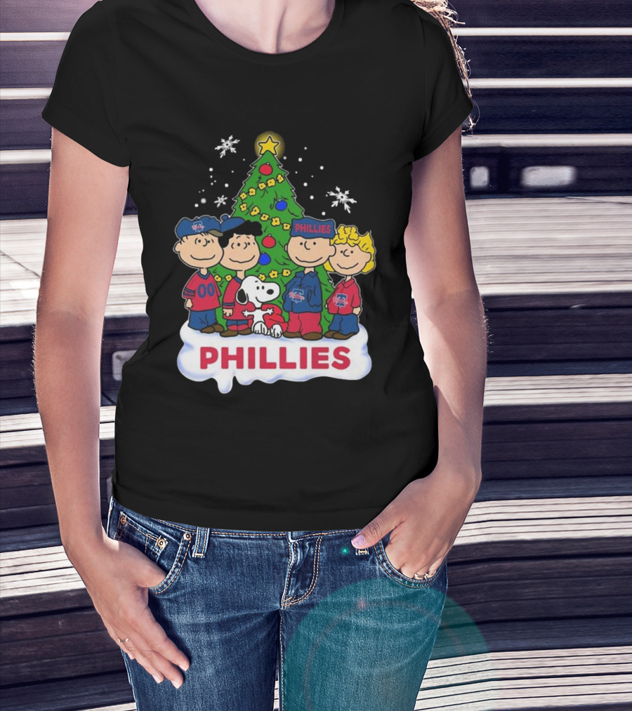 Philadelphia Phillies Snoopy Peanuts Christmas Tree T-Shirt