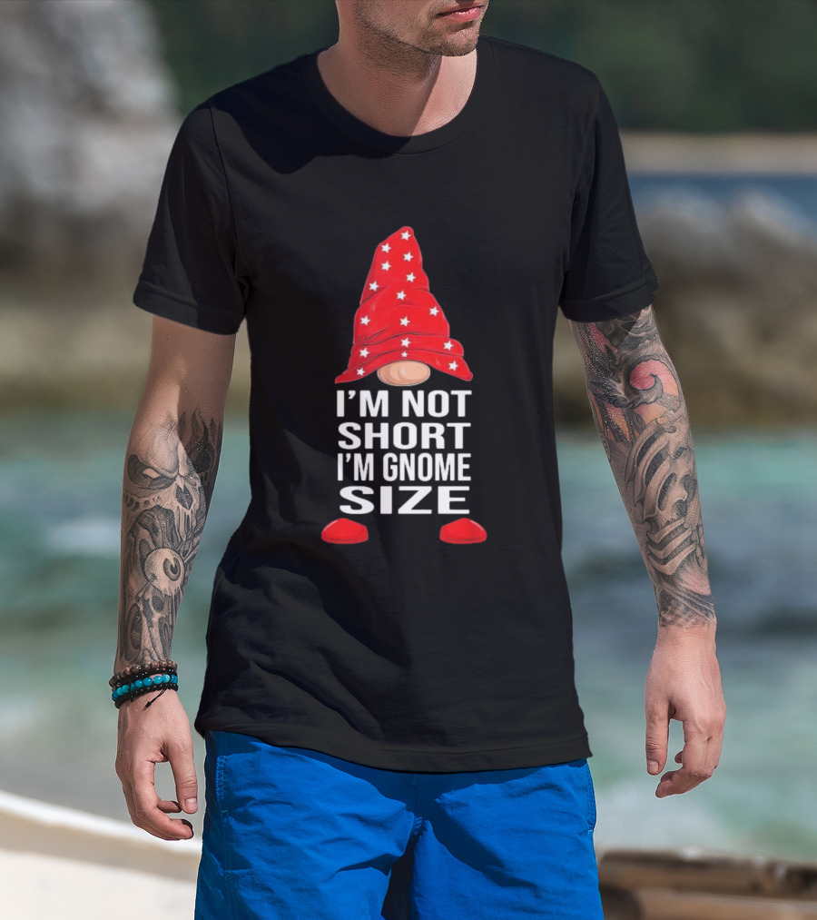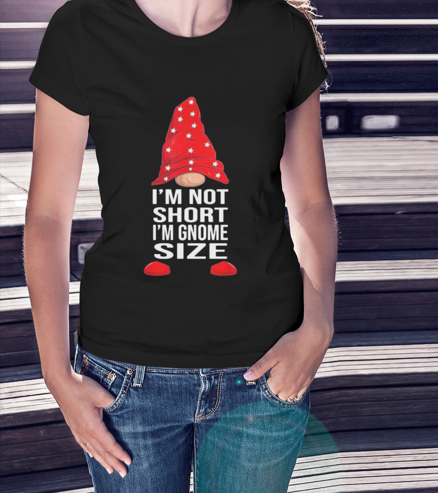 I’m Not Short I’m Gnome Size Red Hat White Stars Christmas T-Shirt