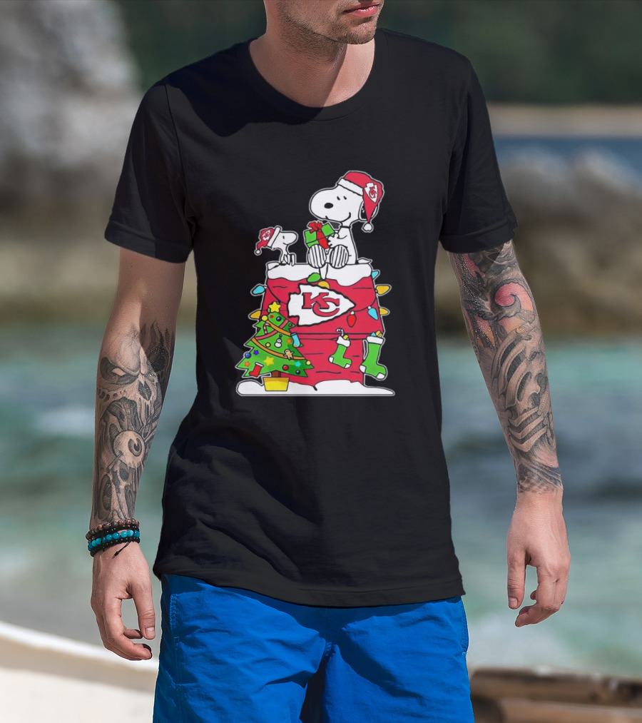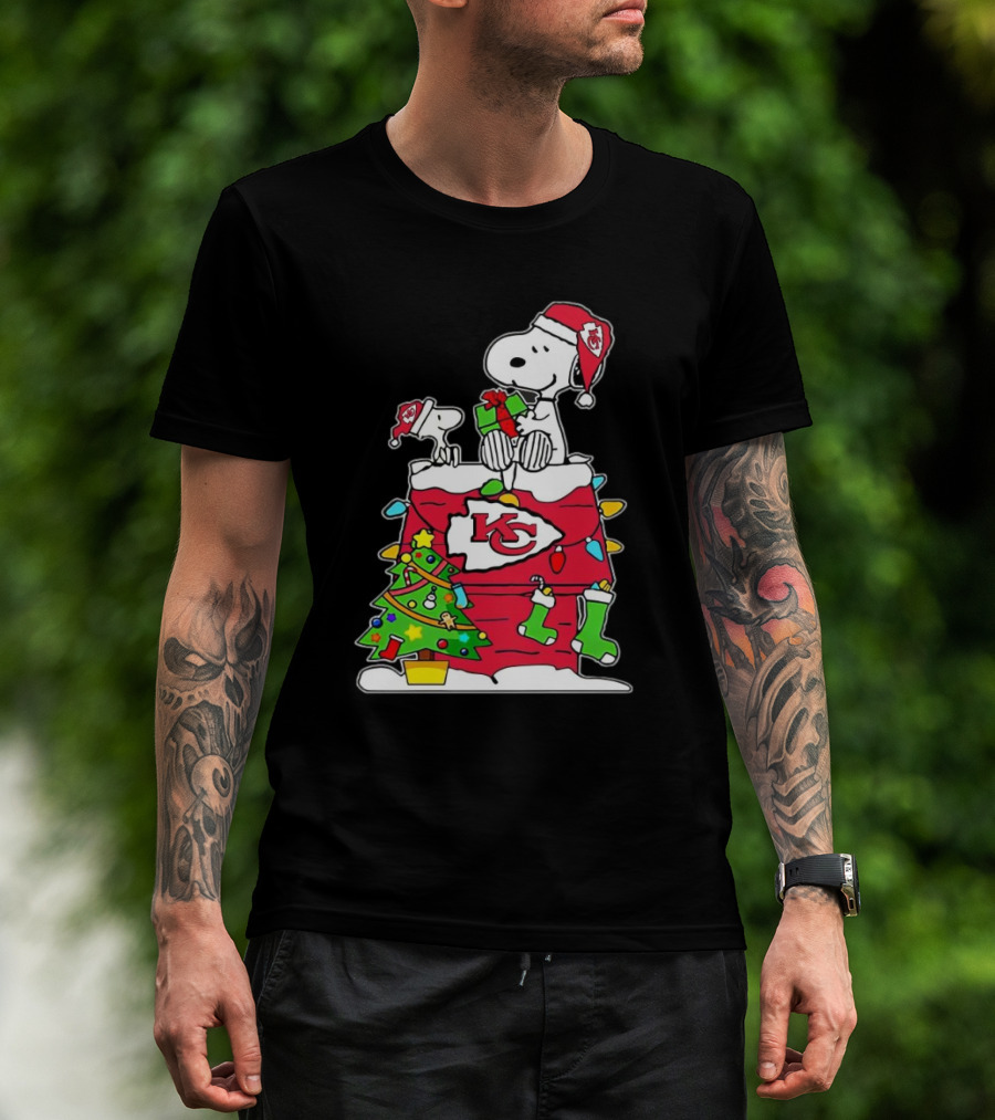 The NFL Kansas City Chiefs Snoopy Woodstock Christmas Tree T-shirt is designed for everyday wear and a consistent fit. Fabric is pre-shrunk ring-spun cotton with durable stitching. See the size chart below for exact measurements.