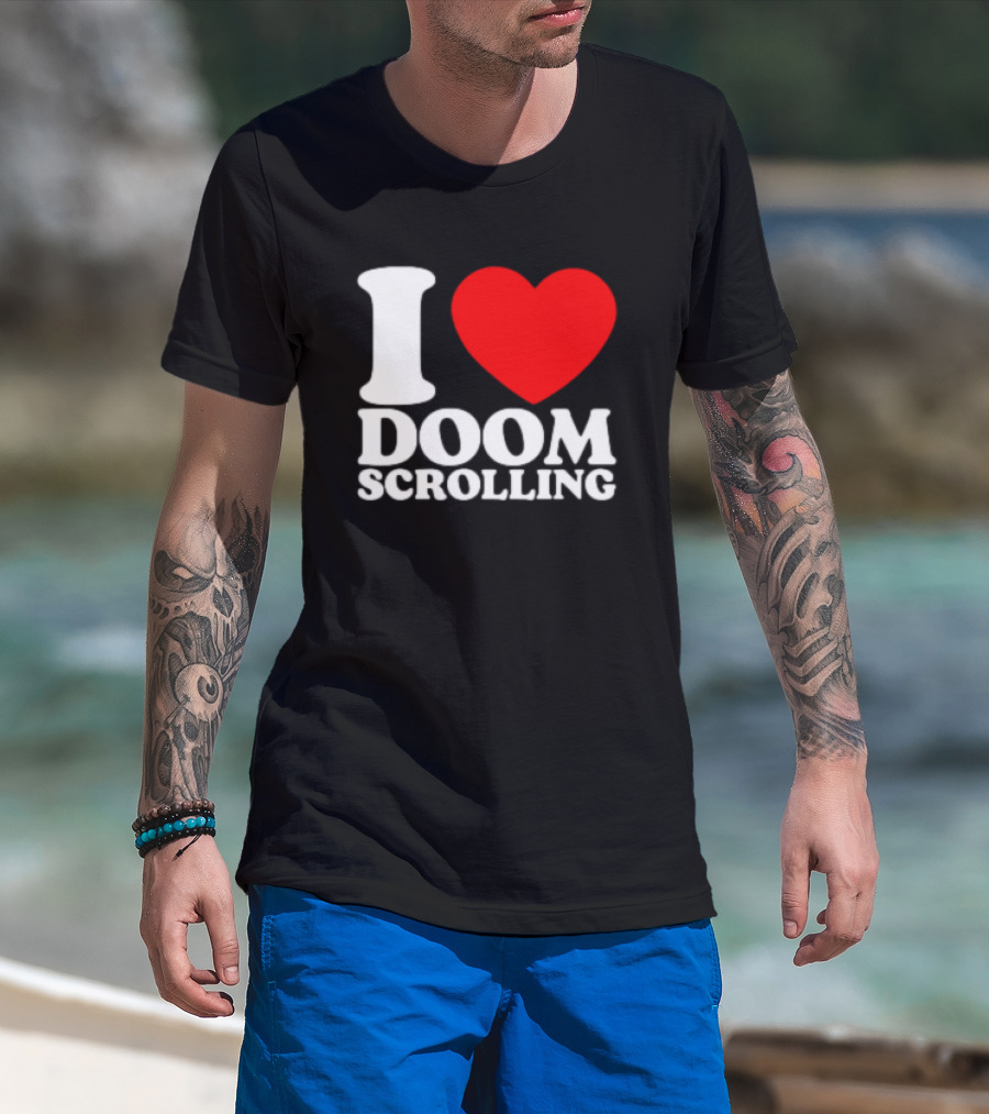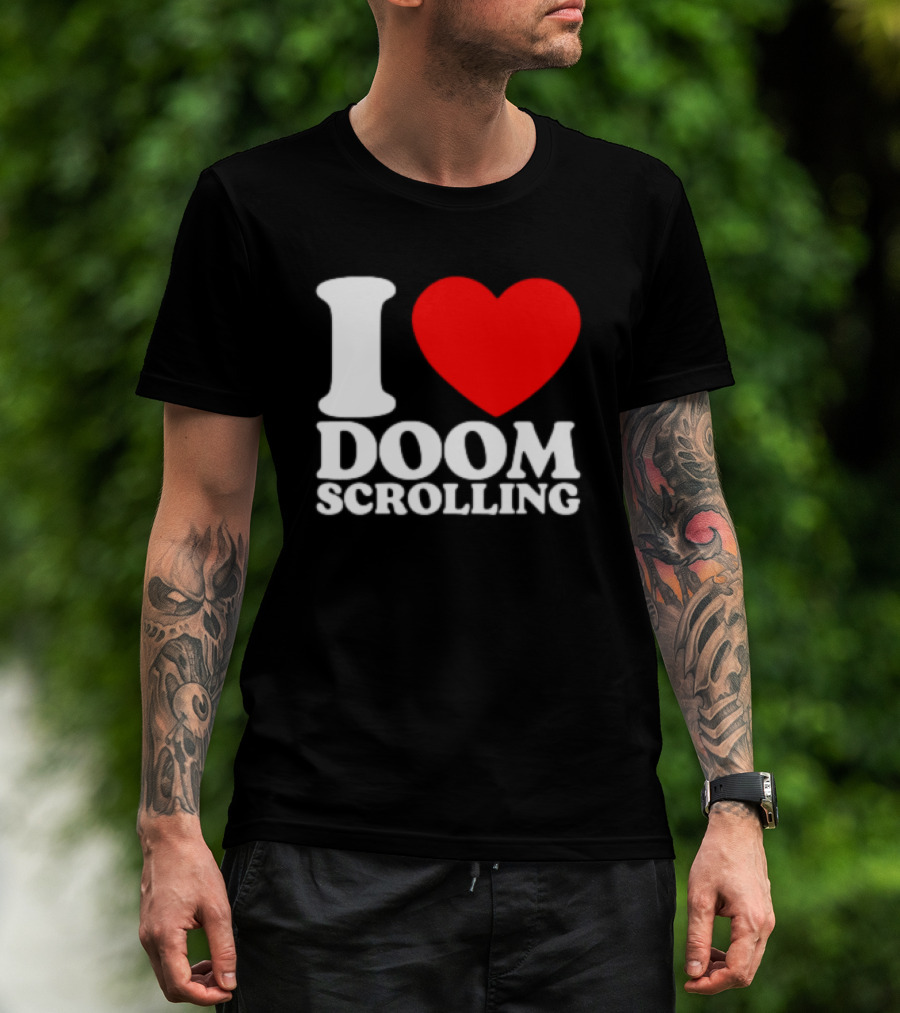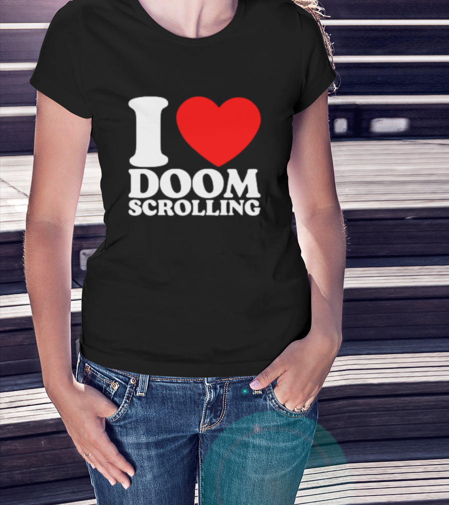 I Heart Doom Scrolling Bold White Text Red Heart T-Shirt
