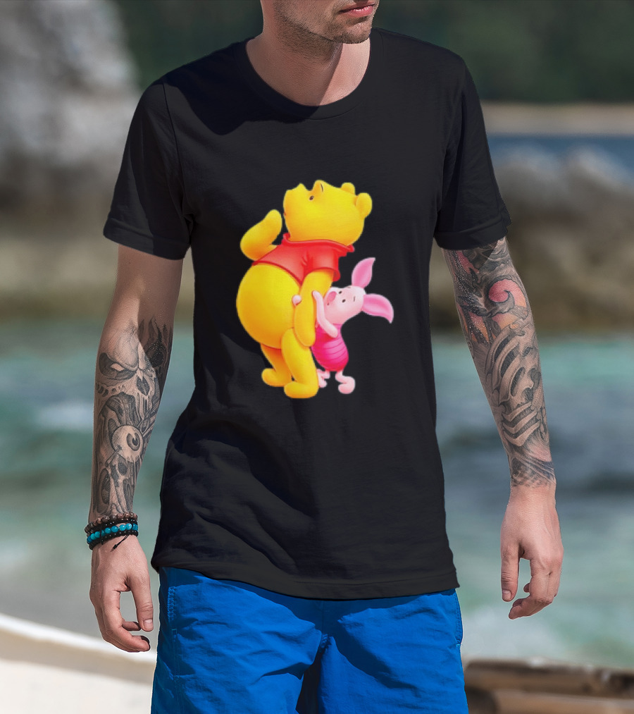 Winnie The Pooh And Piglet Best Friends Forever Hugging Playful Moment T-Shirt