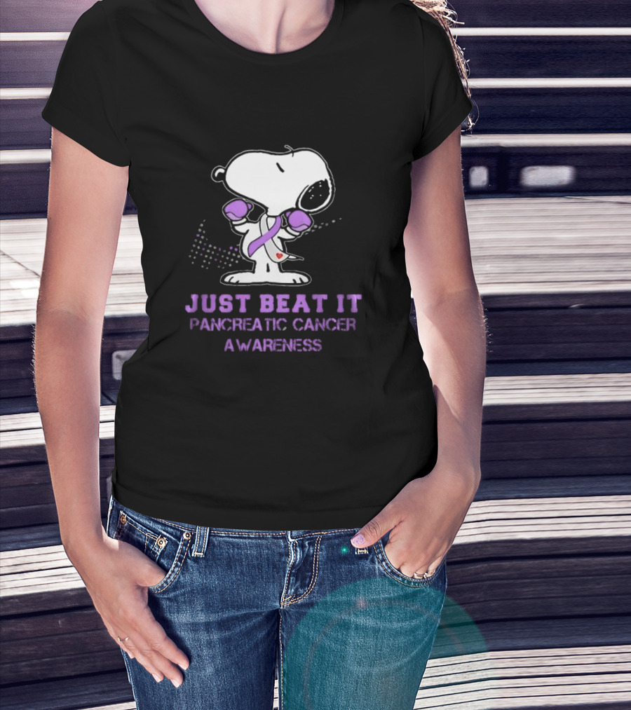 Snoopy Just Beat It Pancreatic Cancer Awareness T-Shirt