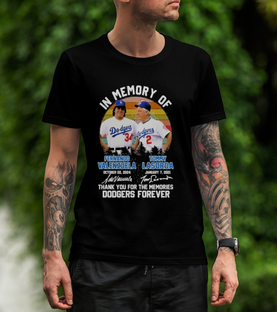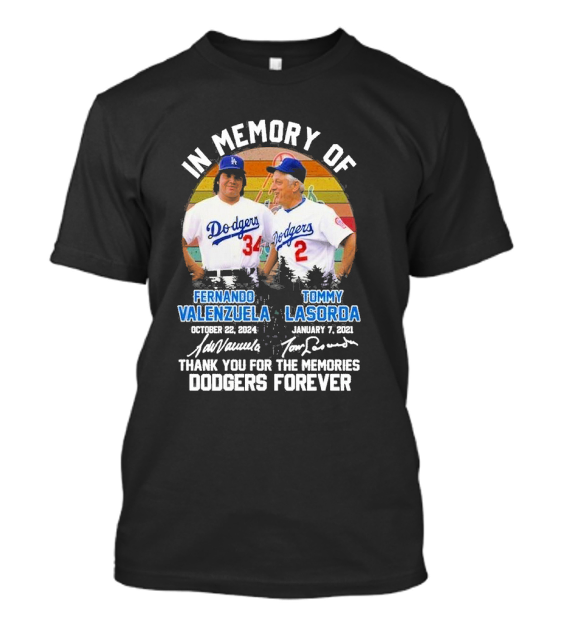 In Memory Of Los Angeles Dodgers Fernando Valenzuela And Tommy Lasorda Thank You For The Memories Dodgers Forever T-Shirt