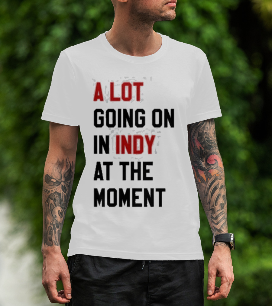 The A Lot Going On in Indy at the Moment T-shirt is designed for everyday wear and a consistent fit. Fabric is pre-shrunk ring-spun cotton with durable stitching. See the size chart below for exact measurements.