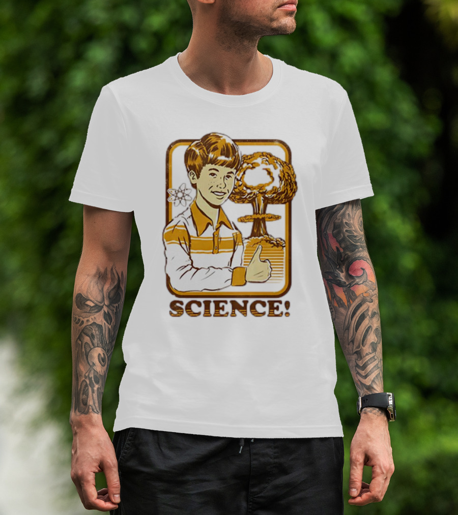 The Atomic Bomb Science Boy with Mushroom Cloud T-shirt is designed for everyday wear and a consistent fit. Fabric is pre-shrunk ring-spun cotton with durable stitching. See the size chart below for exact measurements.