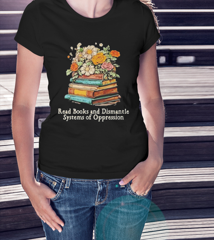 Read Books And Dismantle Systems Of Oppression Floral Stacked Books T-Shirt