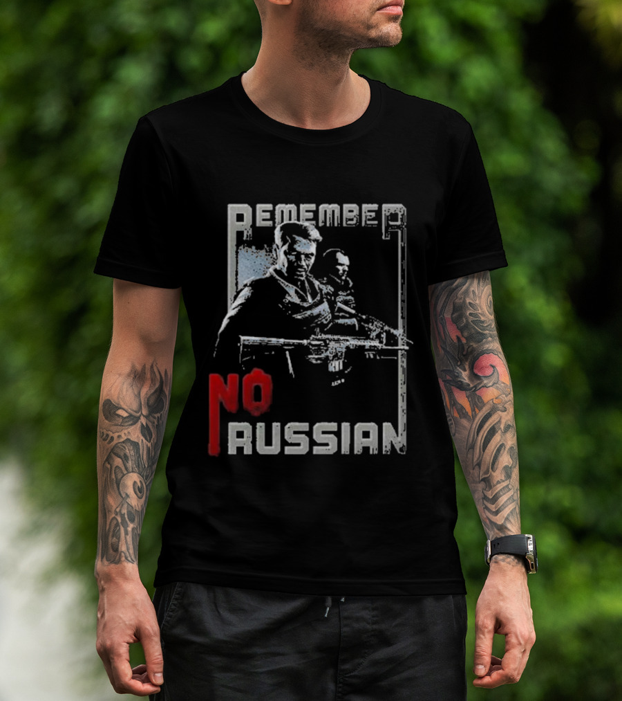 The Remember No Russian T-shirt is designed for everyday wear and a consistent fit. Fabric is pre-shrunk ring-spun cotton with durable stitching. See the size chart below for exact measurements.