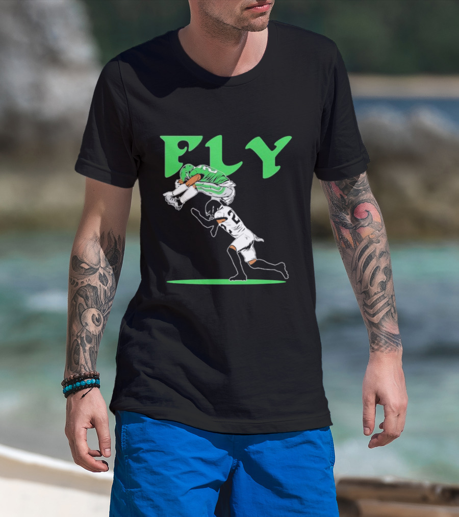 The Fly Saquon Barkley Philadelphia Eagles Philadelphia T-shirt is designed for everyday wear and a consistent fit. Fabric is pre-shrunk ring-spun cotton with durable stitching. See the size chart below for exact measurements.