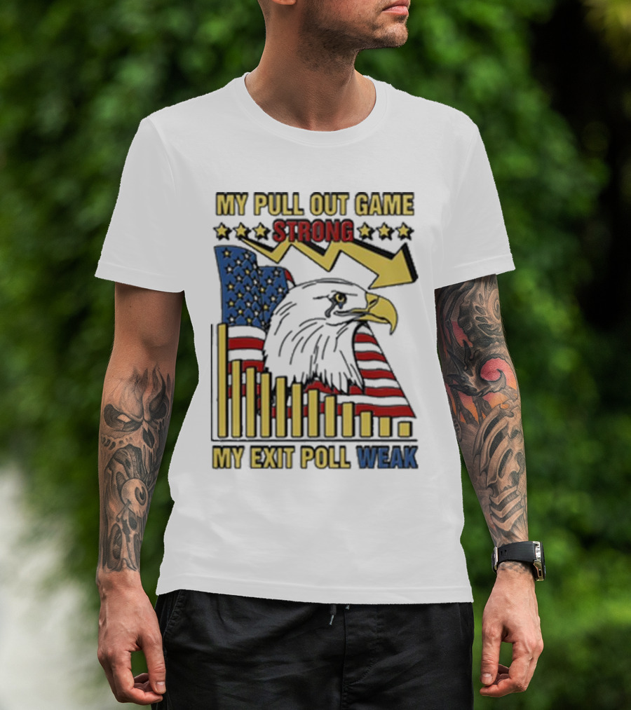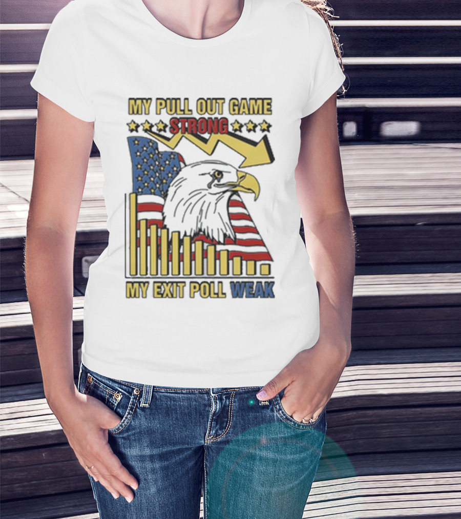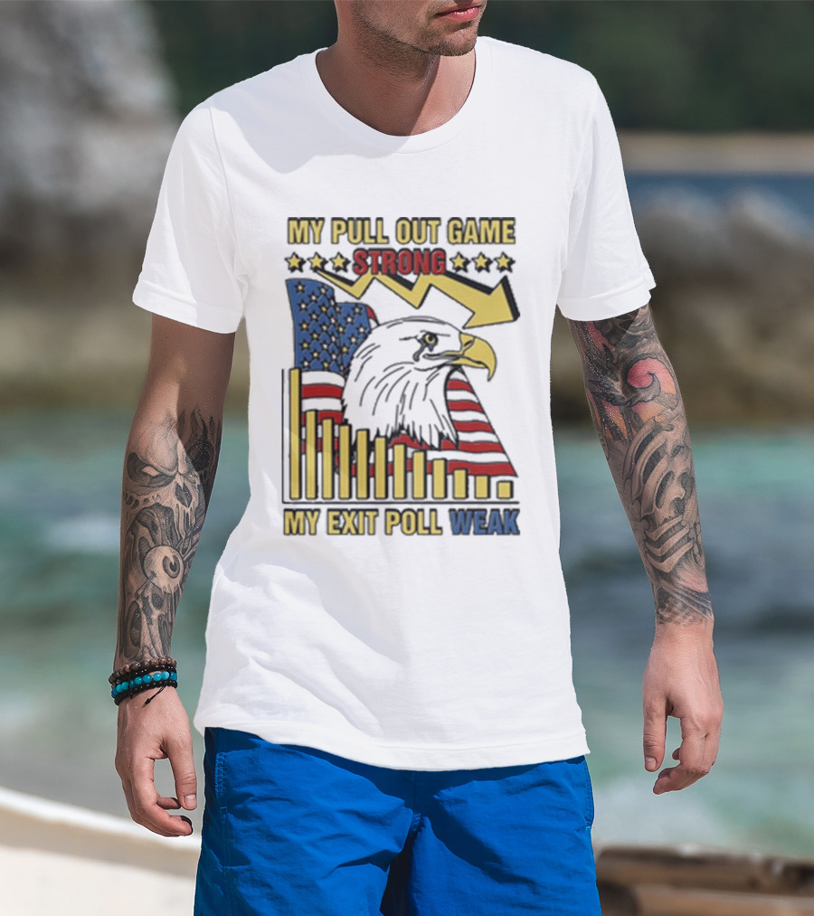 Patriotic Eagle With American Flag And Humor On Pull Out Game And Exit Poll Strength T-Shirt