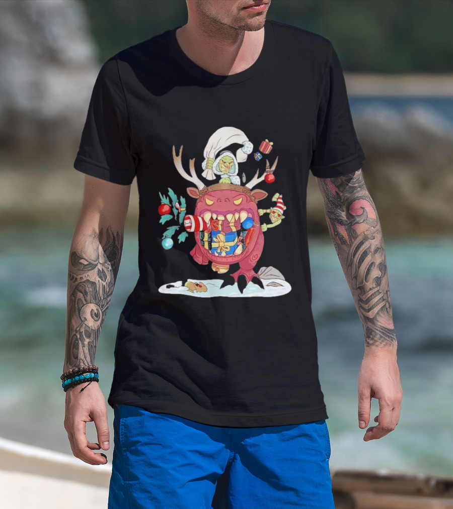 The Grotmas Gitz Merry Gitmas Festive Creature with Antlers and Gifts T-shirt is designed for everyday wear and a consistent fit. Fabric is pre-shrunk ring-spun cotton with durable stitching. See the size chart below for exact measurements.