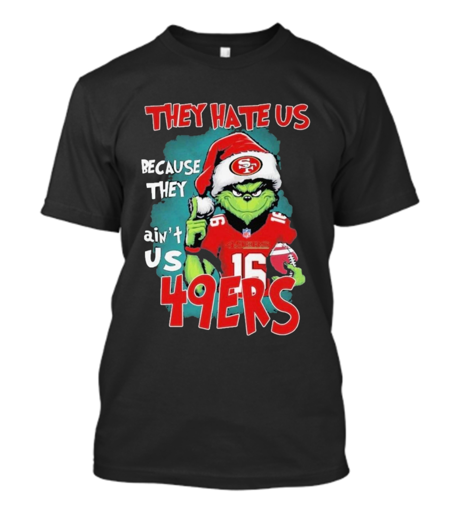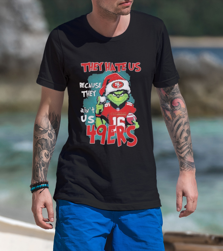 They Hate Us Because They Ain't Us San Francisco 49ers Grinch Santa Football 16 T-Shirt