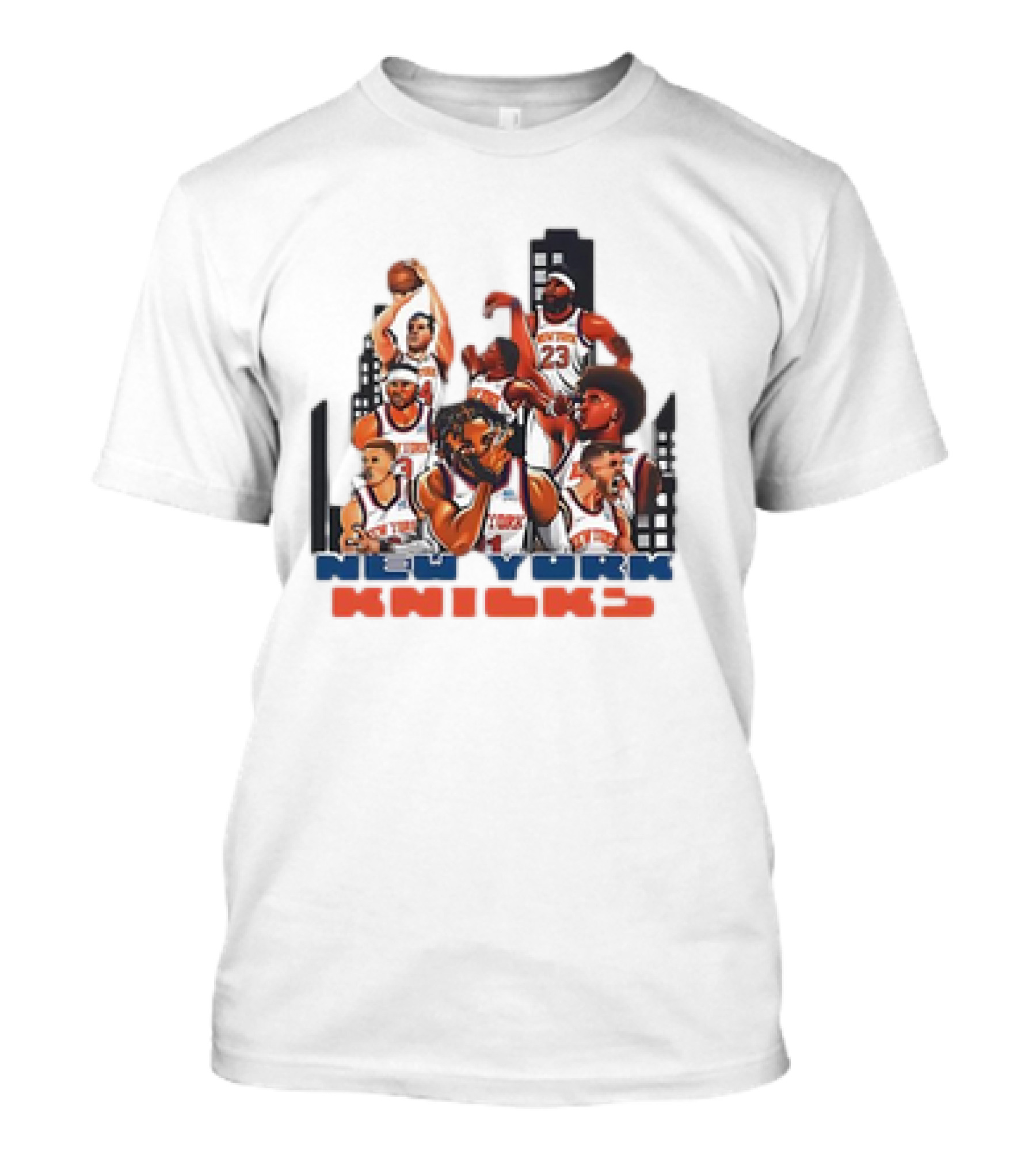 The New York Knicks Jalen Brunson Era Basketball Team Skyline T-shirt is designed for everyday wear and a consistent fit. Fabric is pre-shrunk ring-spun cotton with durable stitching. See the size chart below for exact measurements.