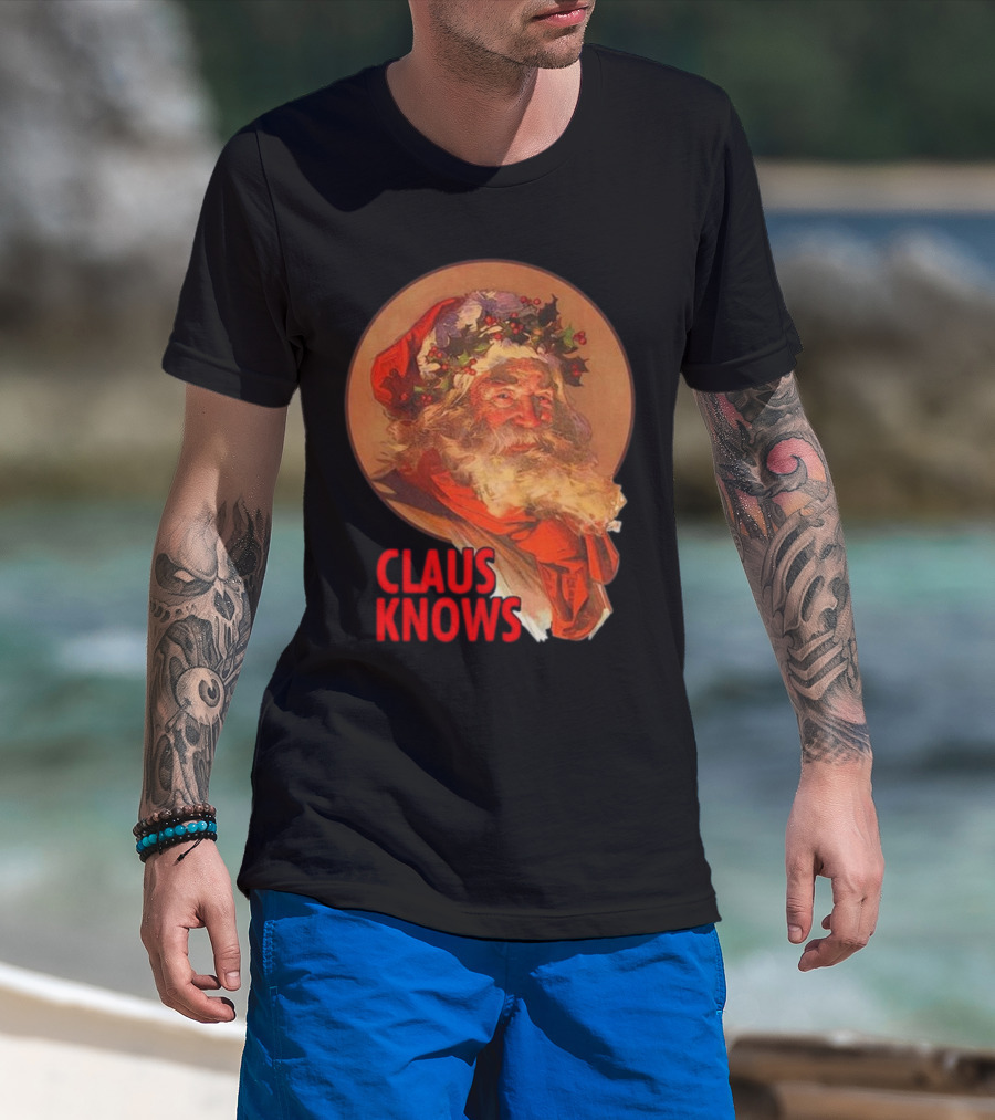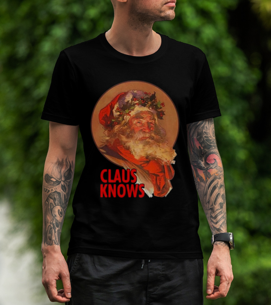Claus Knows Vintage Santa Claus Christmas Funny Holiday Meme T-Shirt