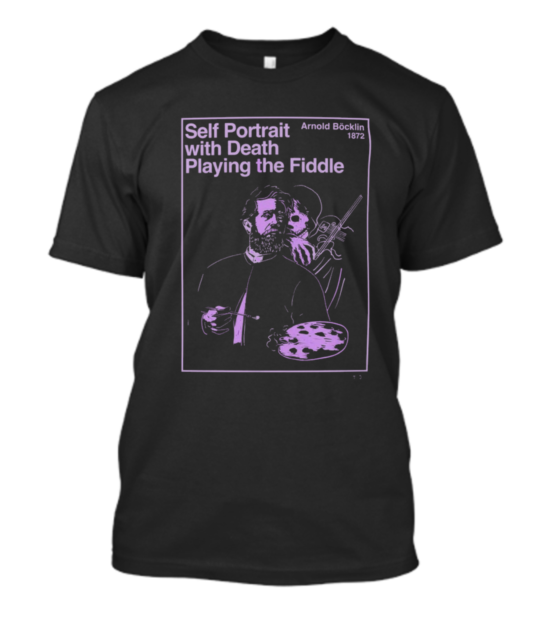 The Self Portrait with Death Playing the Fiddle Arnold Böcklin 1872 T-shirt is designed for everyday wear and a consistent fit. Fabric is pre-shrunk ring-spun cotton with durable stitching. See the size chart below for exact measurements.