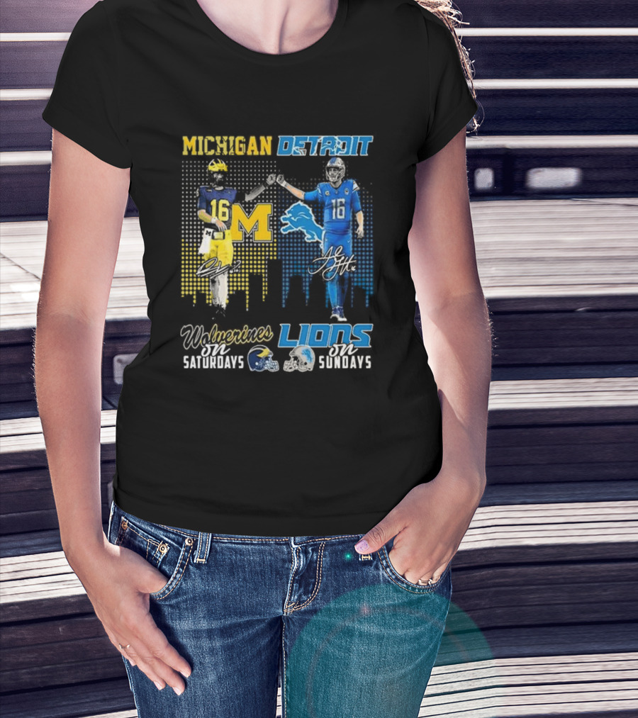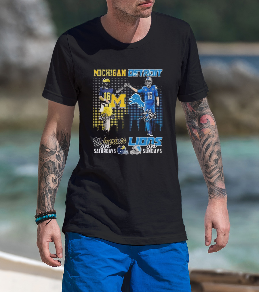 Michigan Detroit Wolverines On Saturdays Lions On Sundays T-Shirt