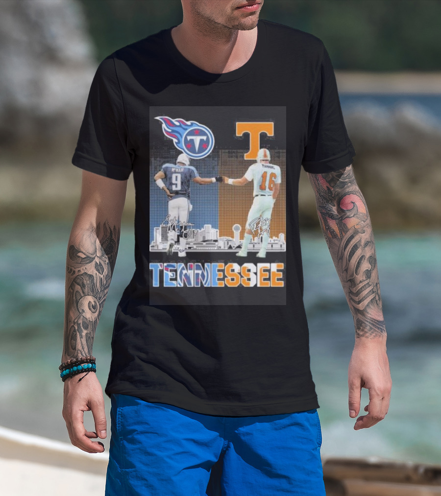 Tennessee Titans Steve McNair Peyton Manning Volunteers Skyline T-Shirt