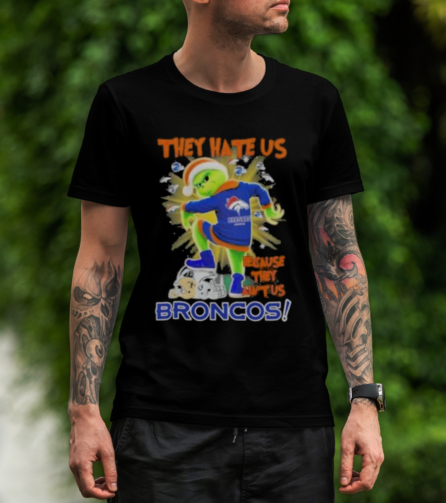 They Hate Us Because They Ain’t Us Grinch Denver Broncos NFL Christmas T-Shirt