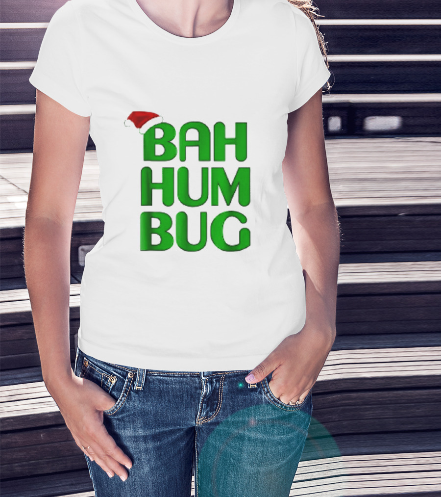 Bah Hum Bug Christmas Text With Santa Hat T-Shirt
