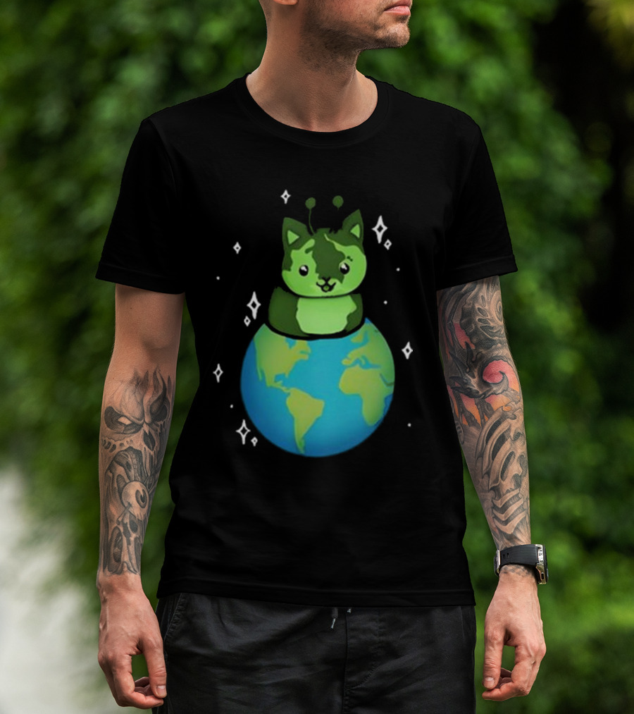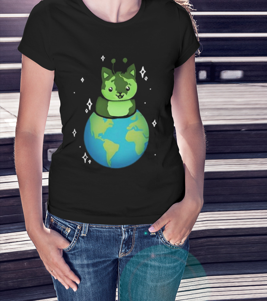 Cult Of Biscuit Alien Biscuit Cat Globe Stars T-Shirt