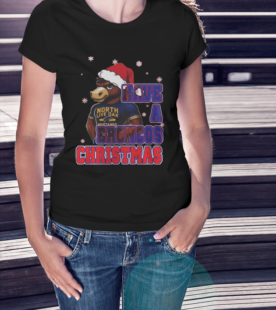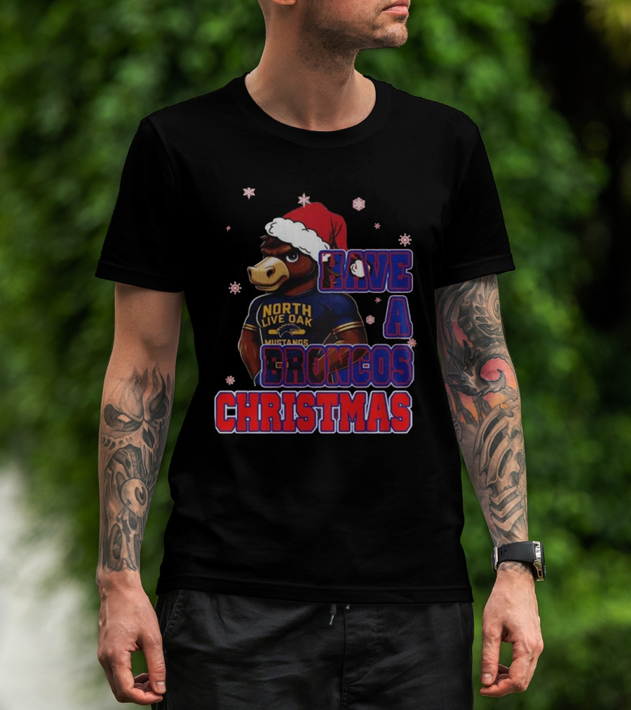 Have A Broncos Christmas North Live Oak Mustangs Santa T-Shirt