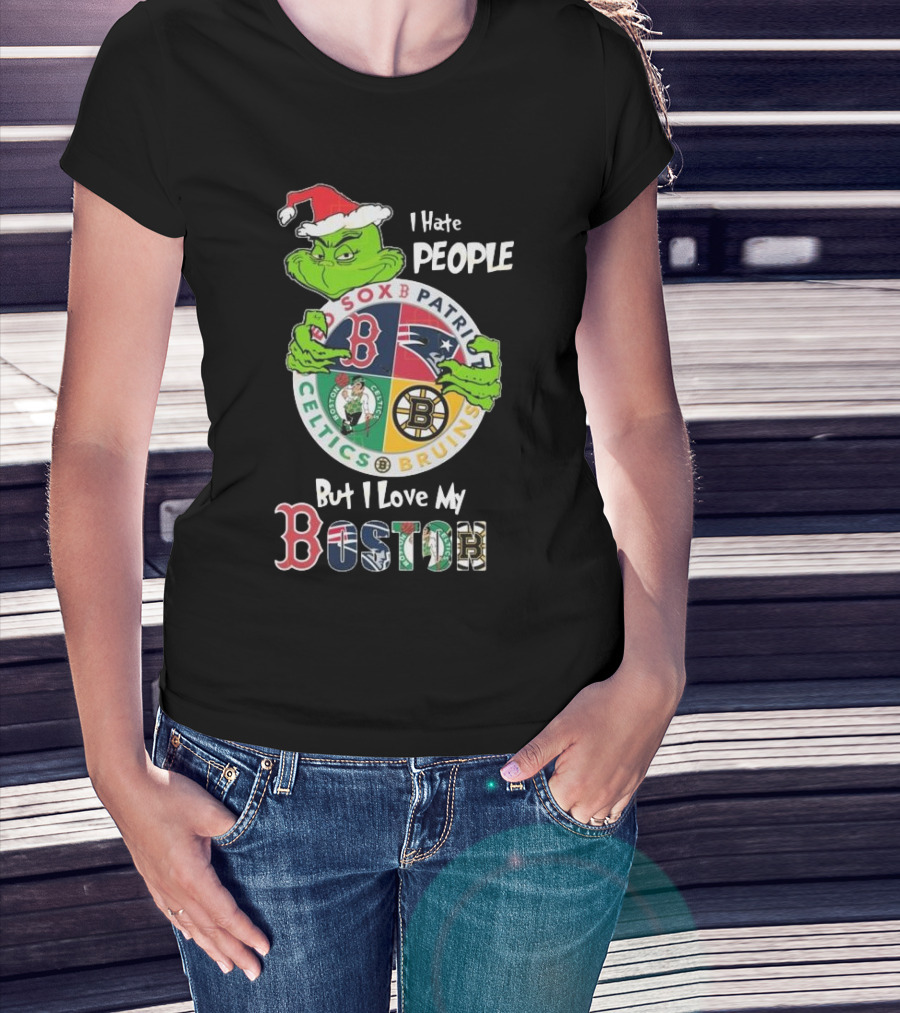I Hate People But I Love My Sox Patriots Celtics Bruins Boston Christmas T-Shirt