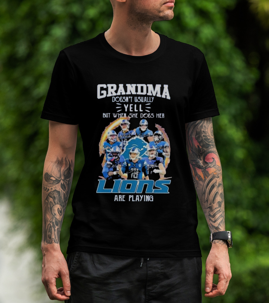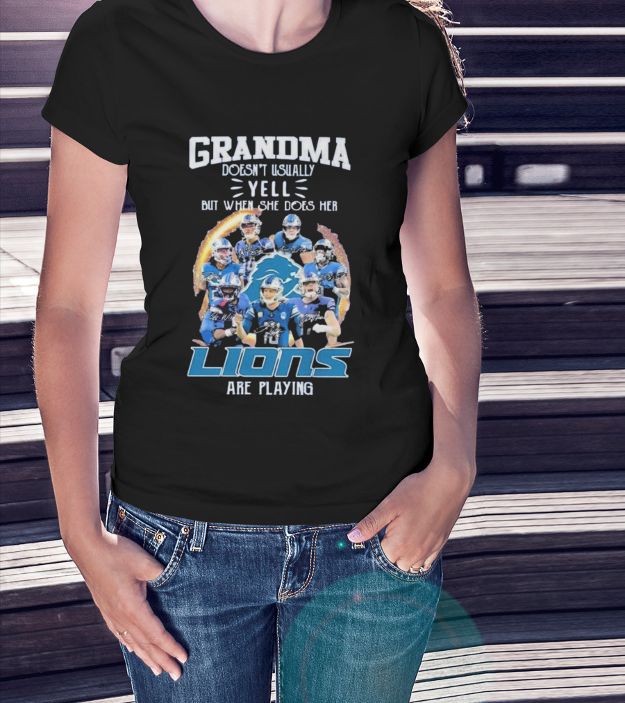 Grandma Doesn’t Usually Yell But When She Does Her Lions Are Playing Detroit Football Players T-Shirt