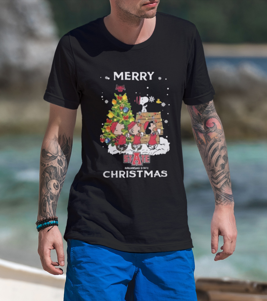 Arkansas State Red Wolves Snoopy Friends Merry Christmas T-Shirt
