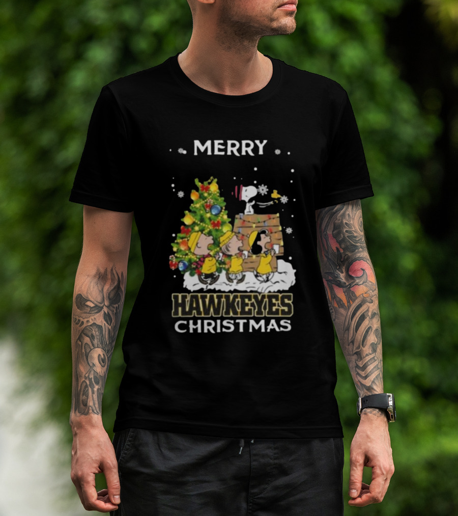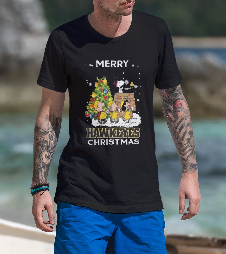 Merry Hawkeyes Christmas Snoopy And Friends Iowa T-Shirt