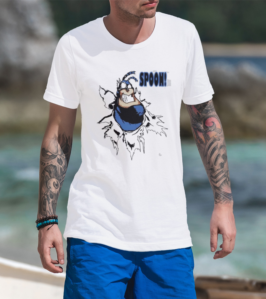 The The Tick Cartoon Hero SPOON T-shirt is designed for everyday wear and a consistent fit. Fabric is pre-shrunk ring-spun cotton with durable stitching. See the size chart below for exact measurements.