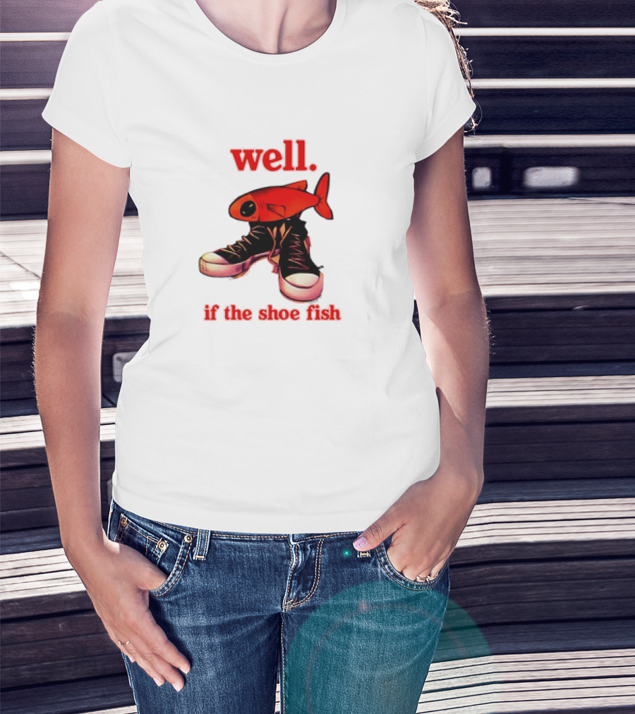 Well If The Shoe Fish Meme Retro Style Sneakers Red Fish T-Shirt
