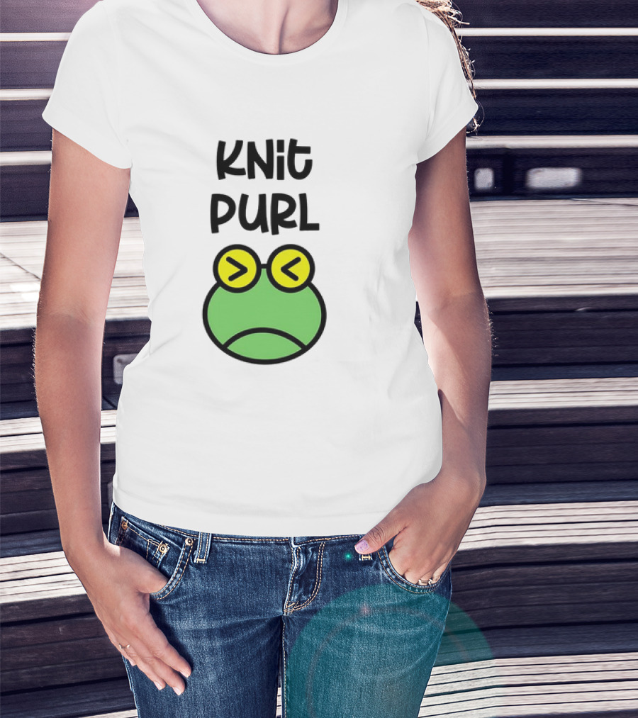 Knit Purl Frog With Glasses Pouting Face T-Shirt