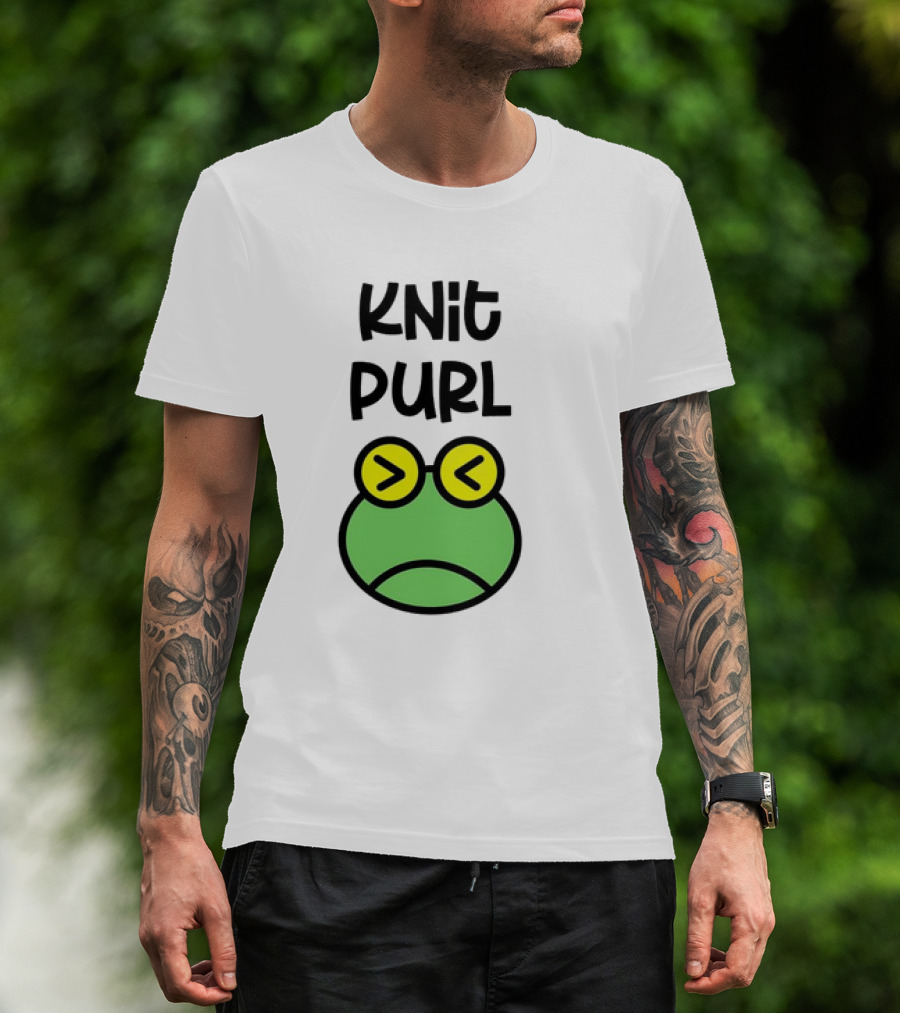 The Knit Purl Frog with Glasses Pouting Face T-shirt is designed for everyday wear and a consistent fit. Fabric is pre-shrunk ring-spun cotton with durable stitching. See the size chart below for exact measurements.