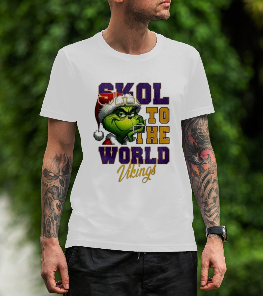 Minnesota Vikings Christmas The Grinch Skol To The World T-Shirt