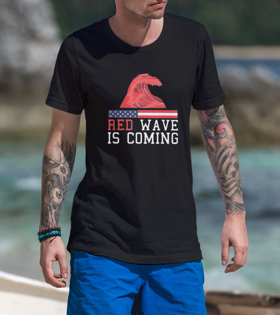 The Red Wave Is Coming American Flag Wave T-shirt is designed for everyday wear and a consistent fit. Fabric is pre-shrunk ring-spun cotton with durable stitching. See the size chart below for exact measurements.