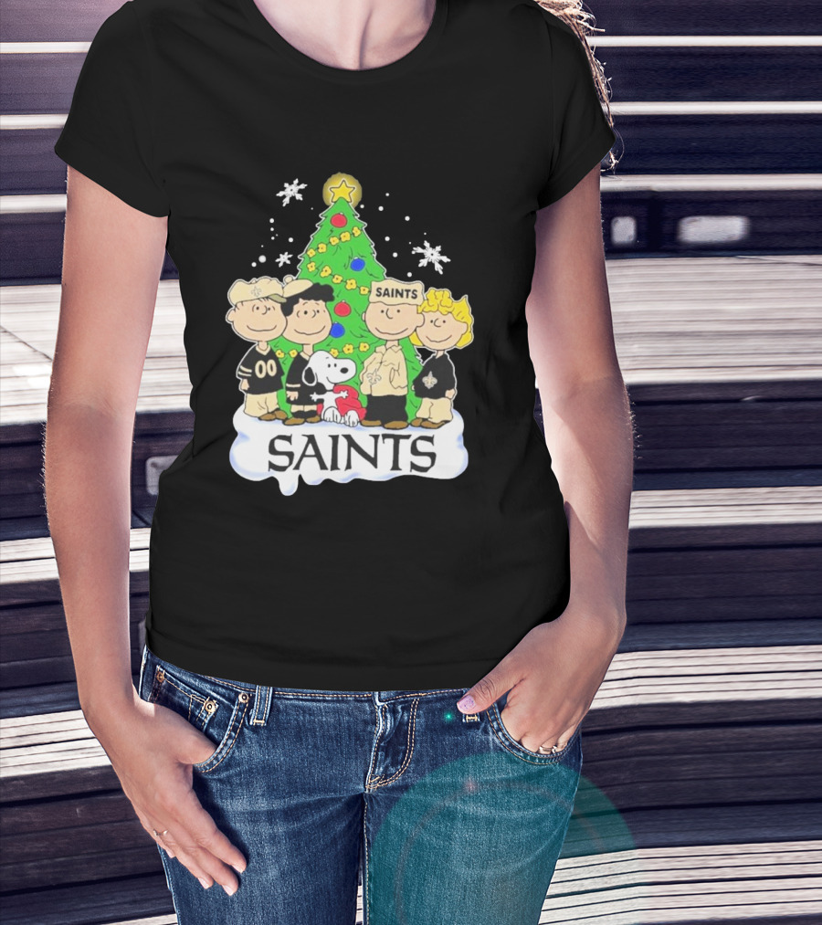 The New Orleans Saints Snoopy Christmas Tree Peanuts Characters Snowflakes T-shirt is designed for everyday wear and a consistent fit. Fabric is pre-shrunk ring-spun cotton with durable stitching. See the size chart below for exact measurements.