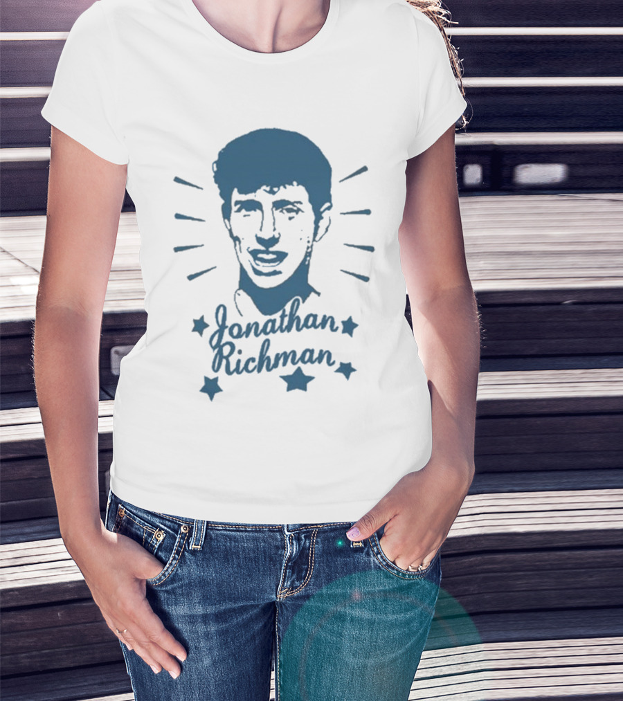 The Jonathan Richman Surrounded by Stars and Radiating Light T-shirt is designed for everyday wear and a consistent fit. Fabric is pre-shrunk ring-spun cotton with durable stitching. See the size chart below for exact measurements.