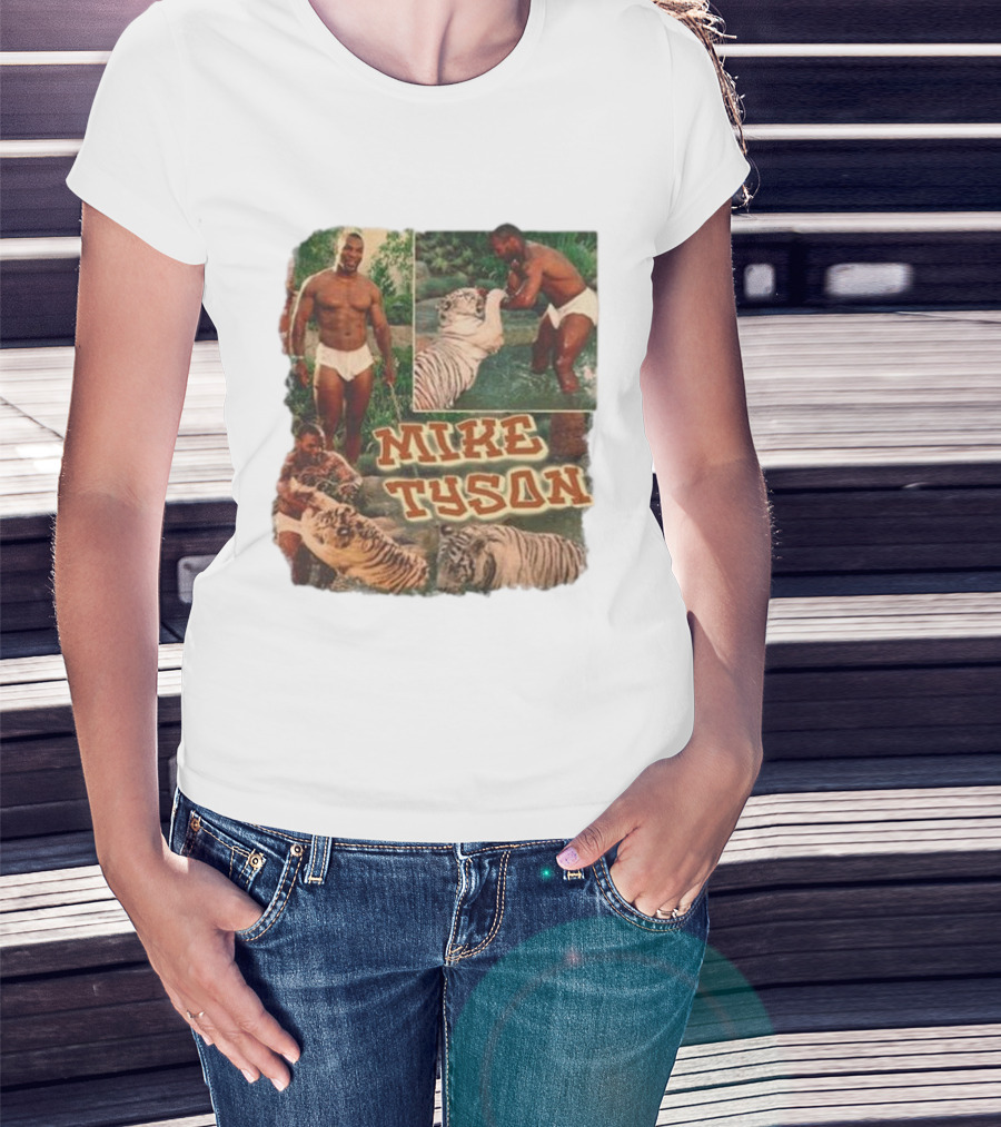 The Mike Tyson with Tigers Vintage 90s Style Collage T-shirt is designed for everyday wear and a consistent fit. Fabric is pre-shrunk ring-spun cotton with durable stitching. See the size chart below for exact measurements.
