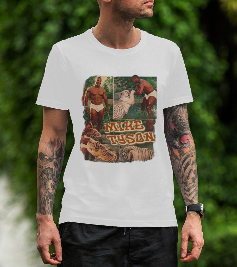 Mike Tyson With Tigers Vintage 90s Style Collage T-Shirt