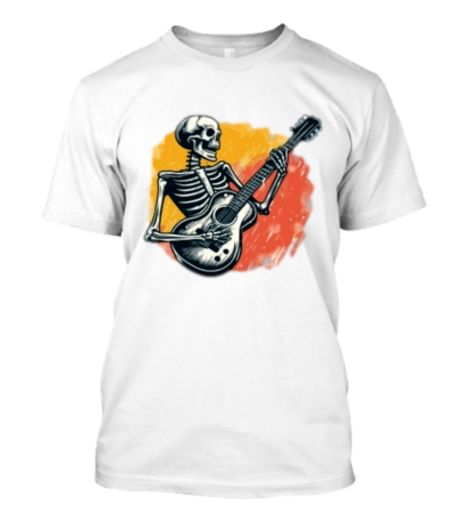 The Skeleton Guitarist Rock Band Iconic T-shirt is designed for everyday wear and a consistent fit. Fabric is pre-shrunk ring-spun cotton with durable stitching. See the size chart below for exact measurements.