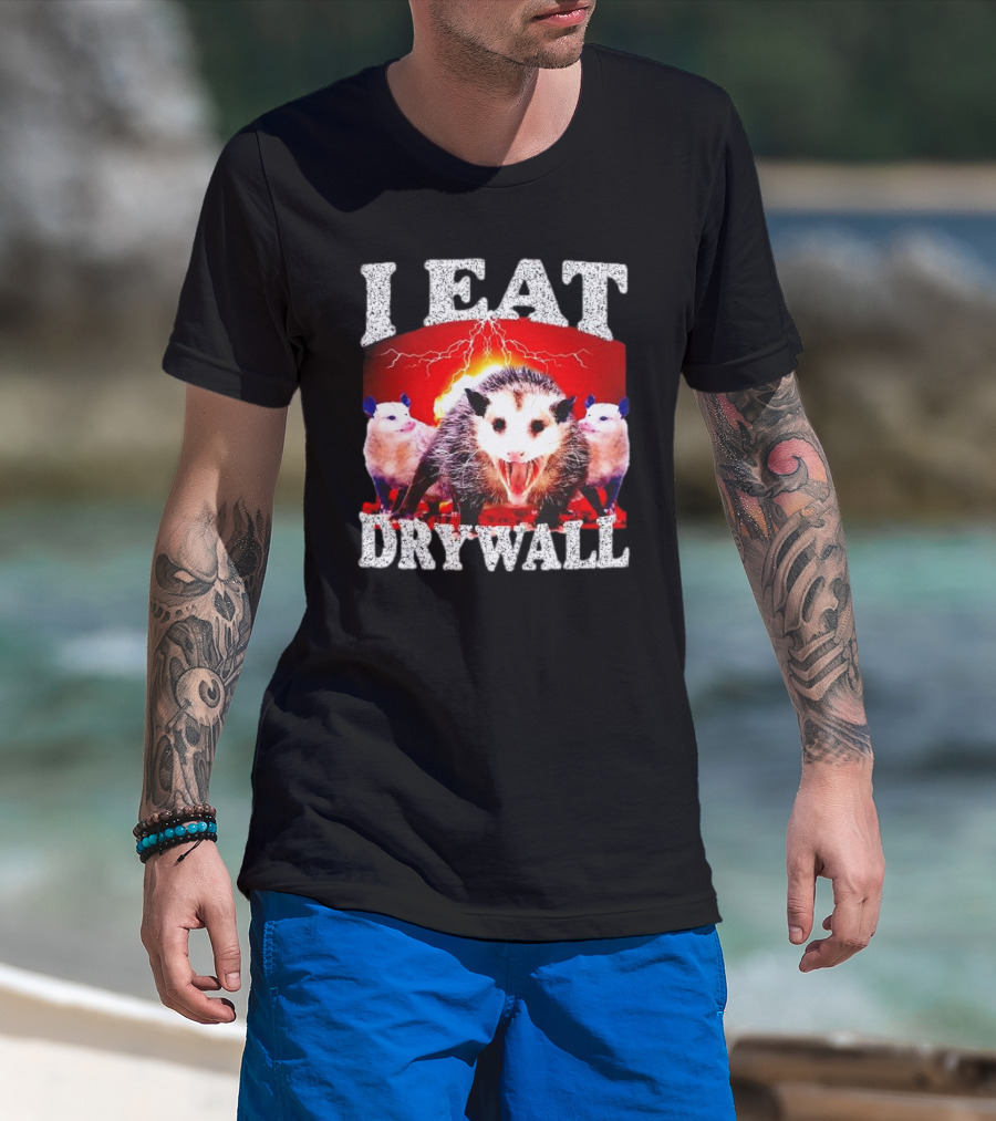 I Eat Drywall Opossum Trio Lightning Background T-Shirt