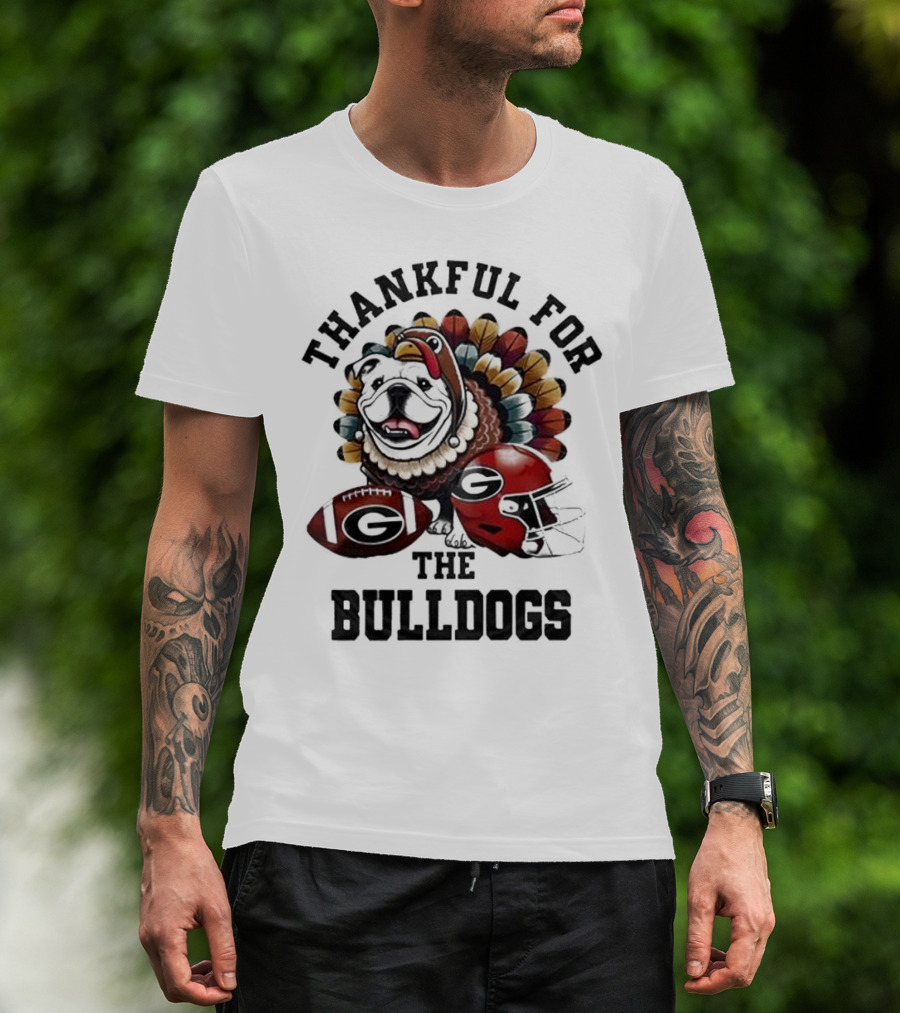 Thankful For The Bulldogs Georgia Bulldogs Football Helmet And Ball Thanksgiving T-Shirt