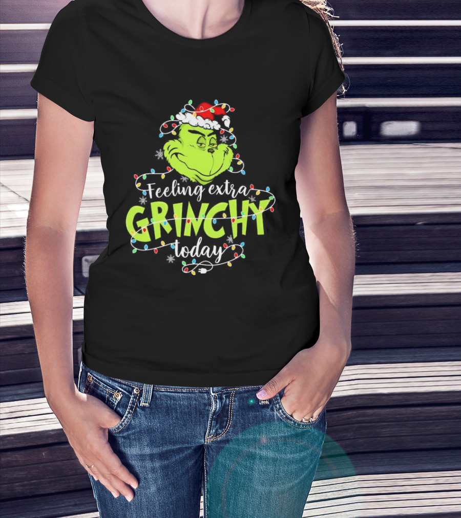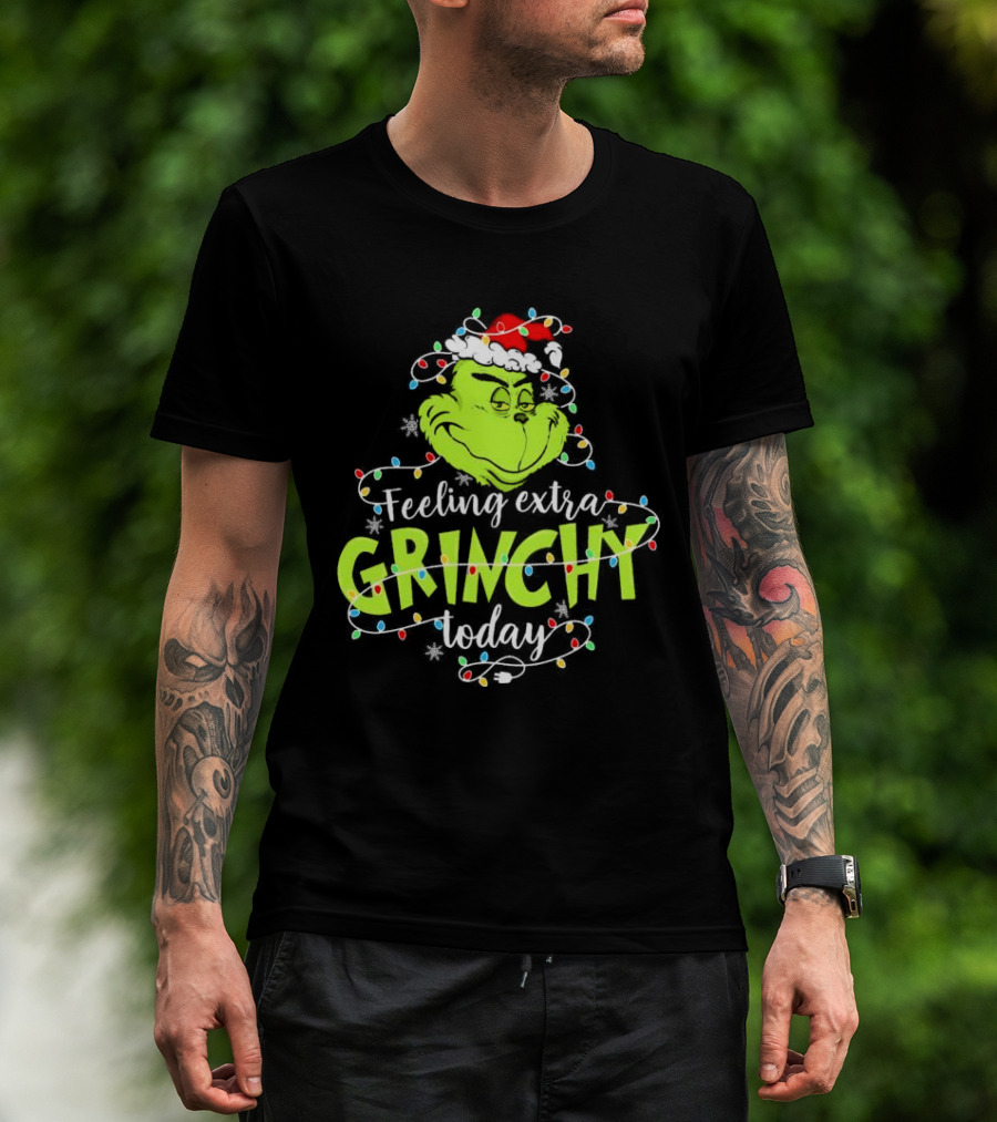 Feeling Extra Grinchy Today Santa Grinch With Christmas Lights T-Shirt