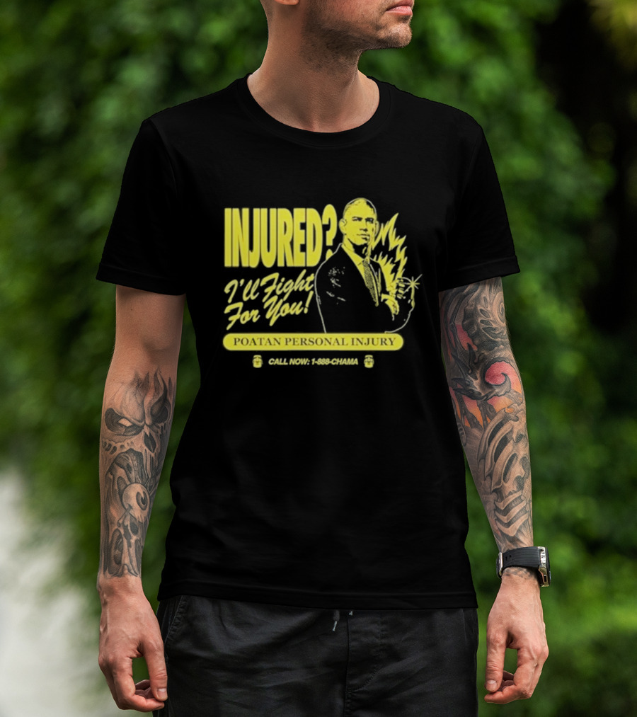 INJURED? I'll Fight For You Poatan Personal Injury Call Now 1-888-CHAMA T-Shirt
