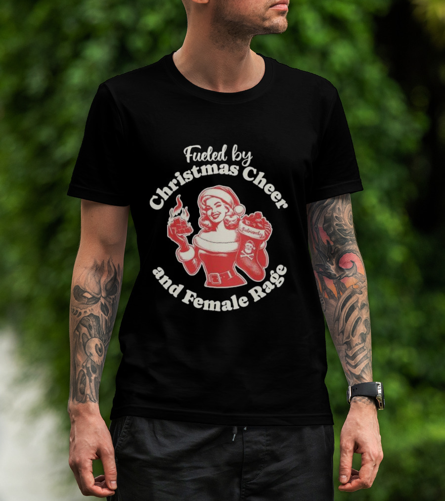 Fueled By Christmas Cheer And Female Rage Retro Santa Pinup T-Shirt
