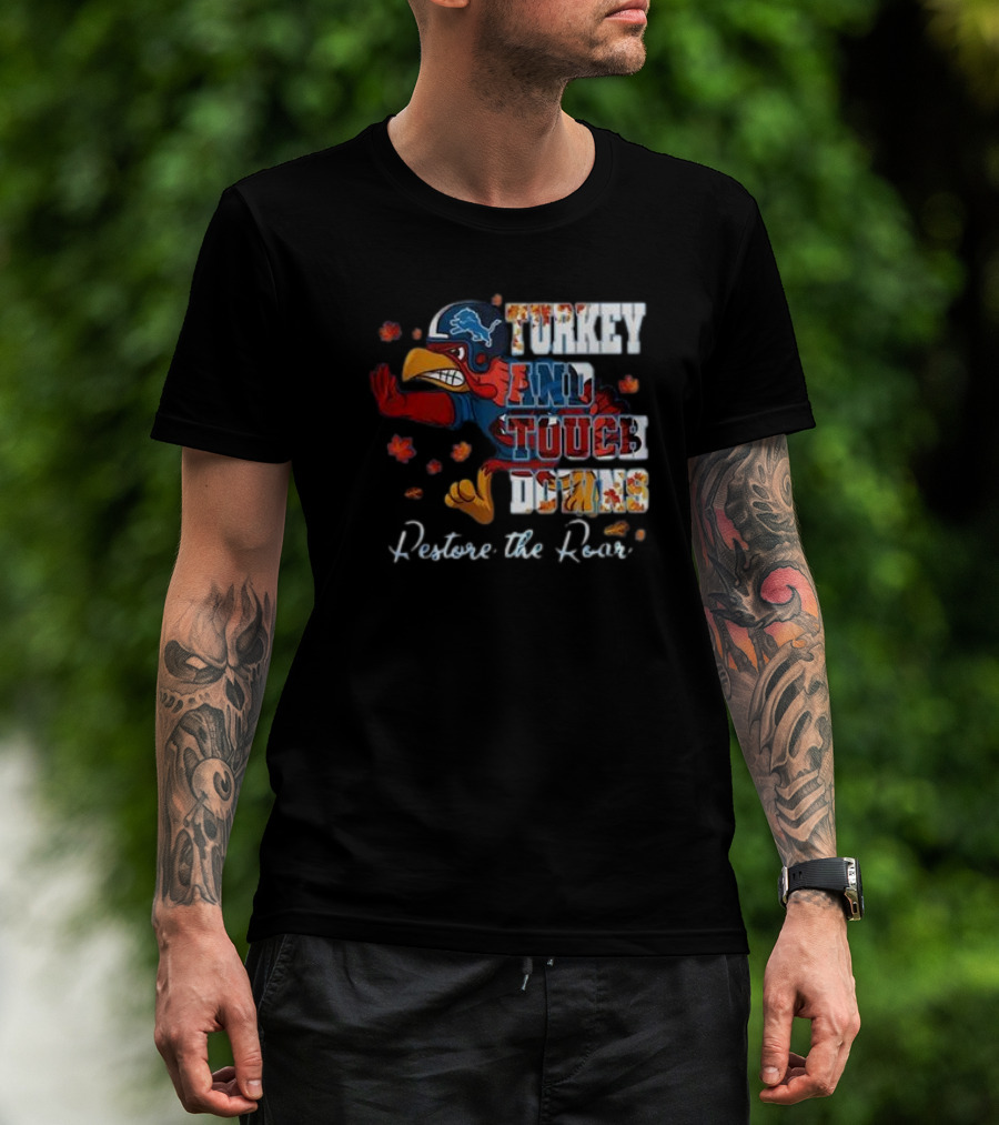 Detroit Lions Turkey And Touchdowns Restore The Roar Thanksgiving Football T-Shirt