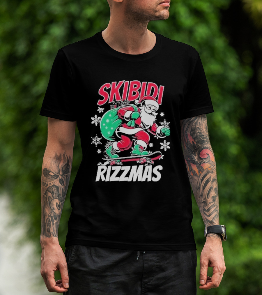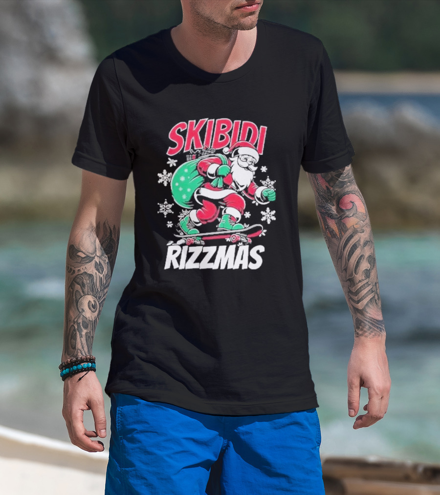 Skibidi Rizzmas Santa Claus Skateboarding Christmas T-Shirt