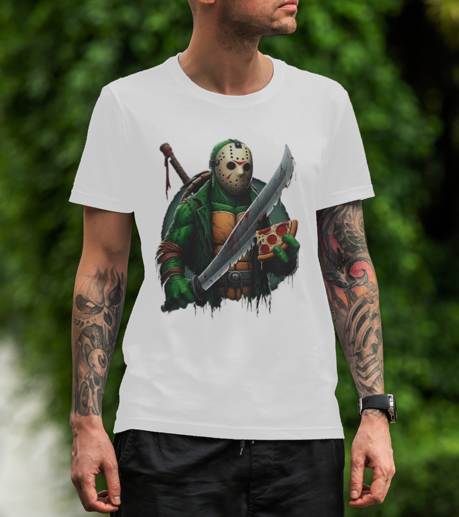 Jason Voorhees Ninja Turtle Pizza Swordsman Crossover T-Shirt